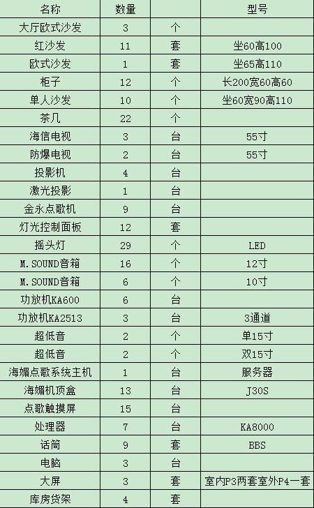 原赤山大酒店KTV处理部分灯光音响、家具沙发
